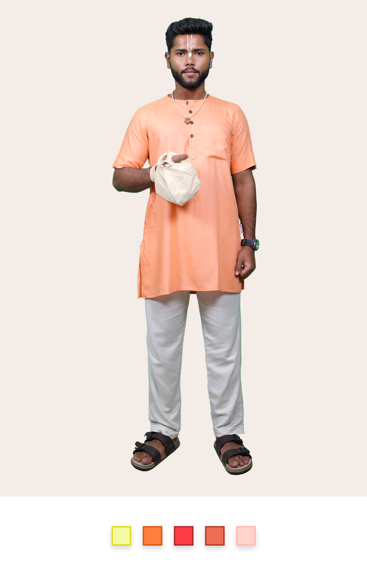 Tailored for temple staff, NPO subordinates, and everyday devotees, this kurta reflects discipline, simplicity, and the spiritual lifestyle expected in temple spaces and gatherings.